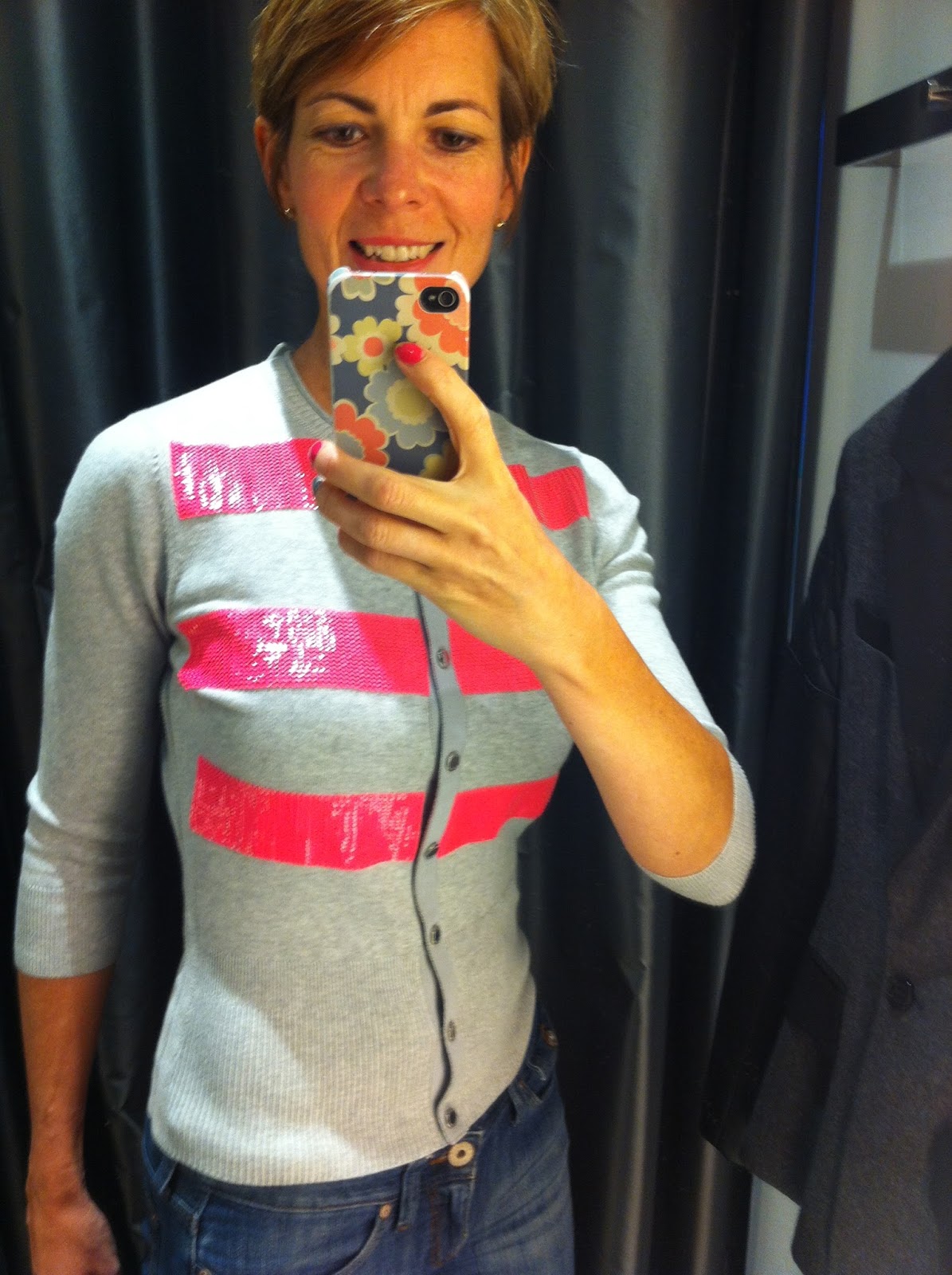 I found this hot pink sequinned cardigan in Karen Millen at Bicester a couple of weeks ago. I loved it but couldn't justify its existence in my wardrobe, so it may still be there. Not only would this go with brighter coloured pieces for now but it would also work well with black and grey in the winter, or with it being so fitted, with one of the fuller circle style skirts that are starting to appear in the shops.